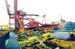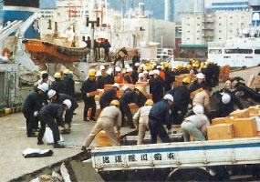 阪神・淡路大震災での神戸港における緊急物資の輸送の模様
