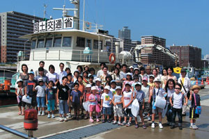 私たちの生活に重要な役割を果たしている「みなと」や、海洋環境の保全の大切さについて、楽しく理解してもらえるよう、パネルや模型などを使ったわかりやすい説明や、実際に船に乗り込んで海からみなとを見ていただく見学会を開催しています。