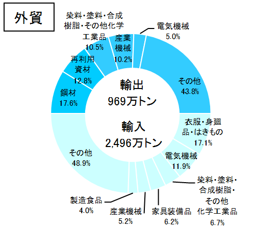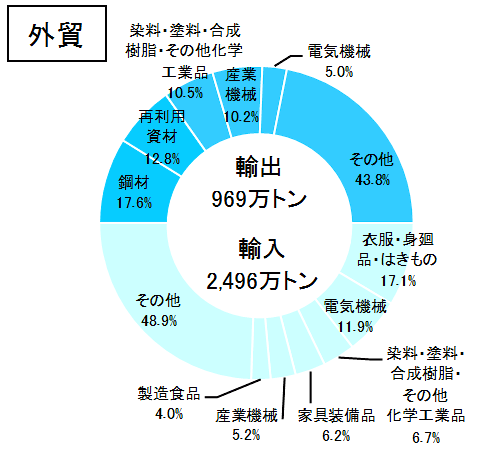 大阪市は、昔の航路標識「澪つくし」が市章になっているように、大阪港とともに繁栄してきました。大阪港は難波津と呼ばれた時代から、国内交通の要衝として栄え、1868年(慶応4年)に開港して以来、近代港湾への整備が進められてきました。現在では、日常物資を中心に取扱貨物量が増加し、国際都市大阪の世界に開かれた窓口として関西経済を支える重要な役割を果たしています。